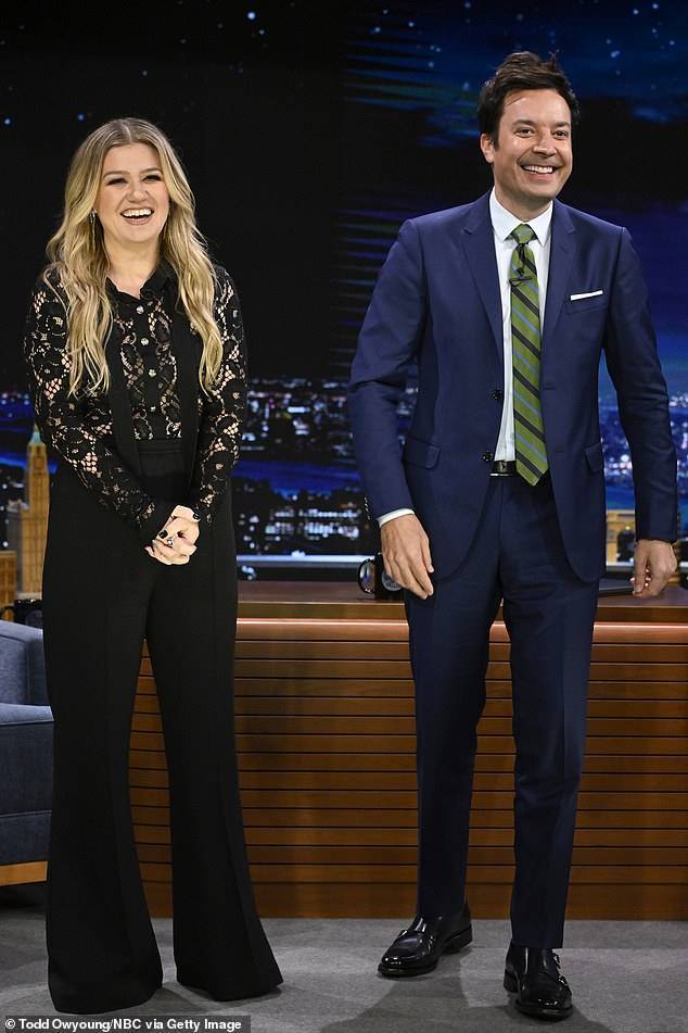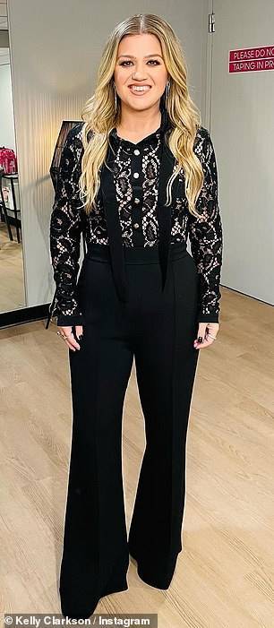 Wow: In the photograph, the singer, 41 — who went through a bitter divorce from ex Brandon Blackstock, 46, in 2021 — wowed in a black lace top and matching black pants while getting ready for an appearance on Jimmy Fallon; seen on the show