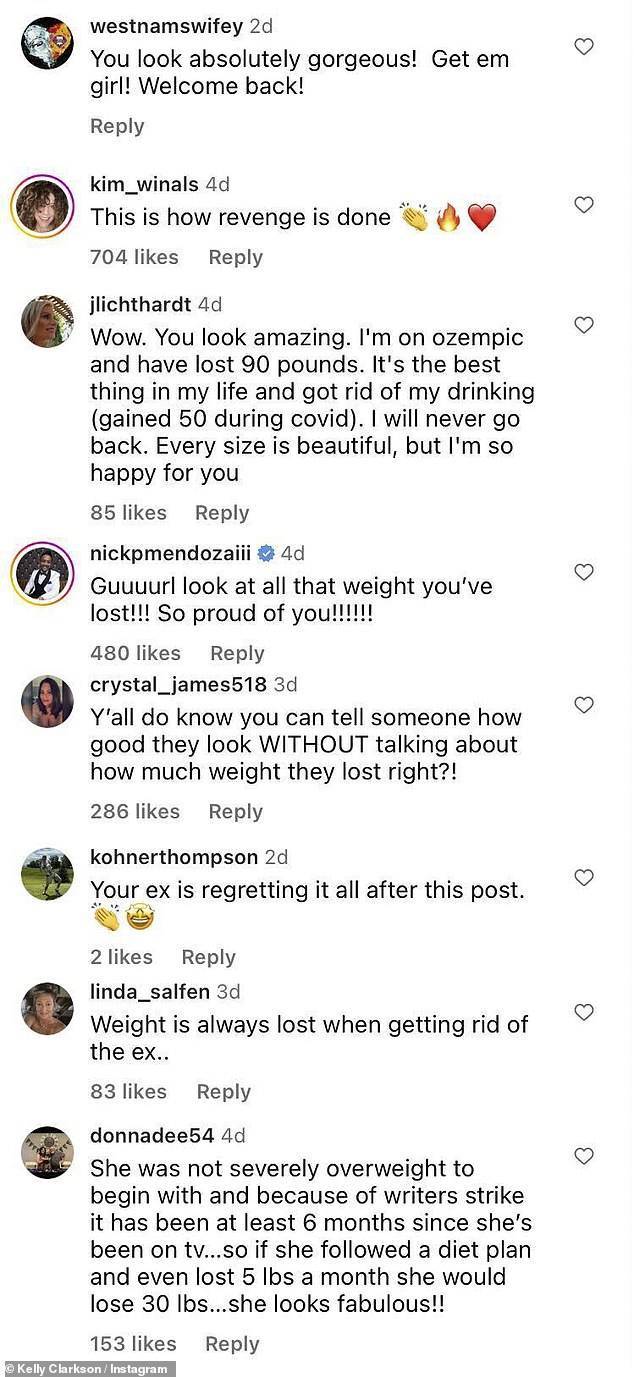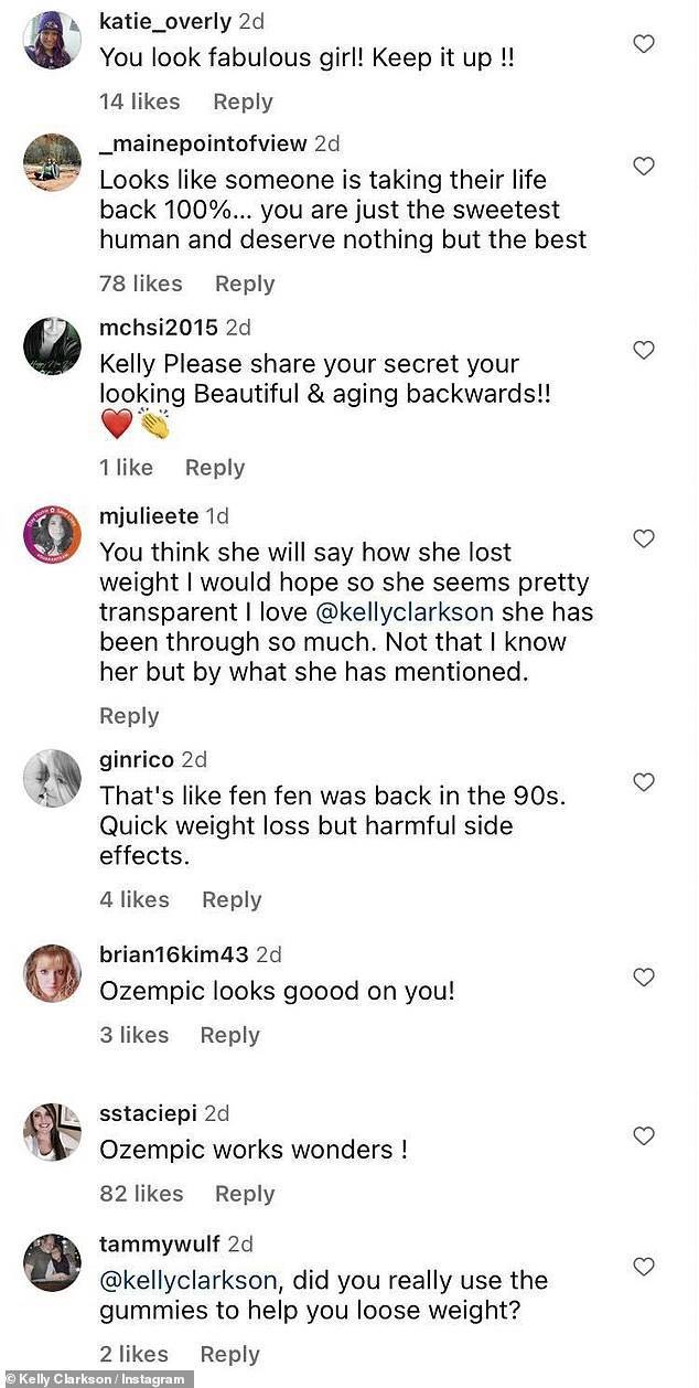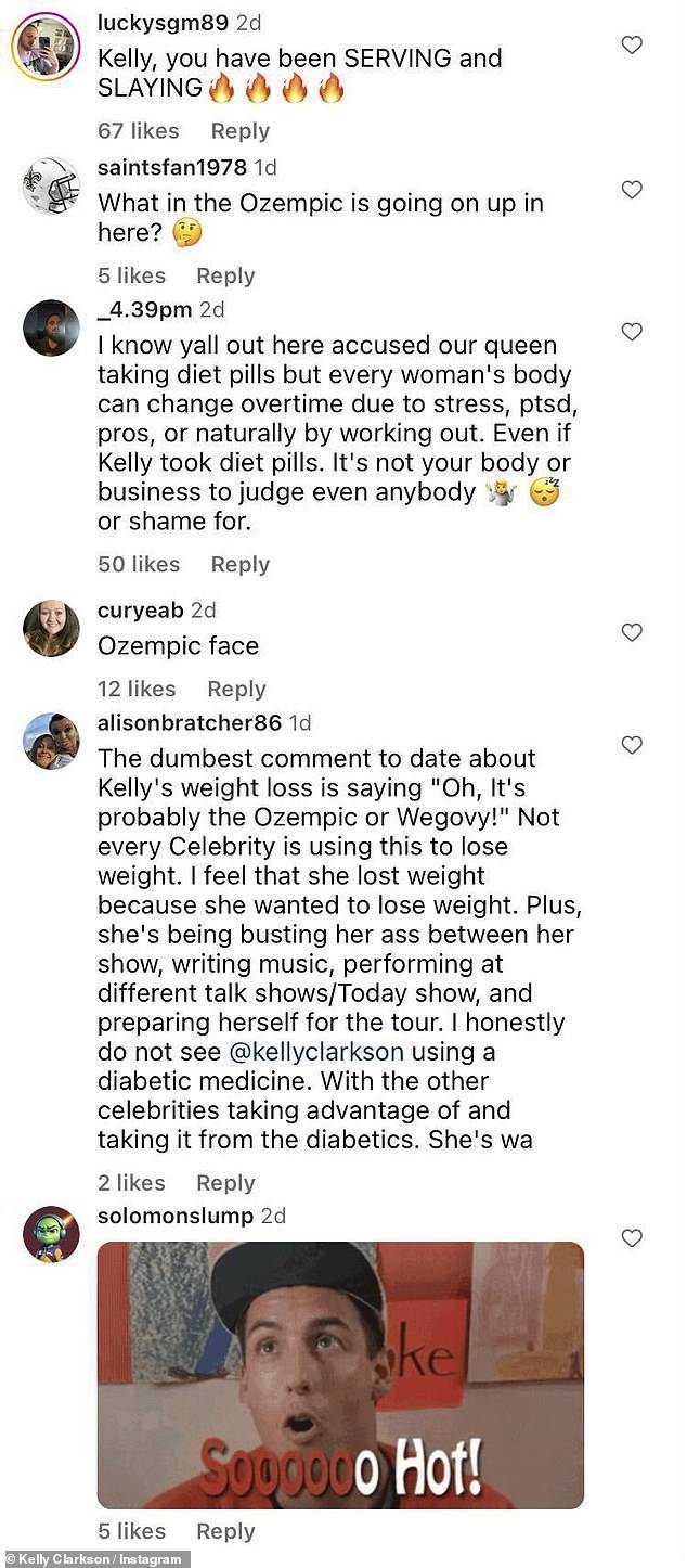 Another one concurred with the statement, writing, 'The dumbest comment to date about Kelly's weight loss is saying 'Oh, it's probably Ozempic or Wegovy! Not every celebrity is using this to lose weight.