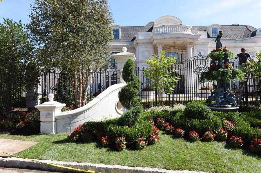 The 33,000-square-foot manor has a host of amenities including a gym, sauna, library, home theater, wine cellar, “personal beauty parlor,” solarium, indoor and outdoor Olympic-sized pools, plus a 13-car showroom.